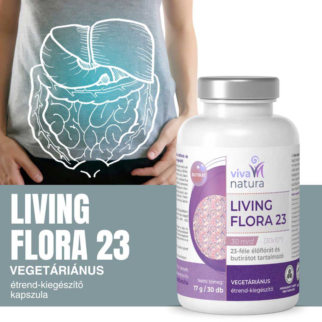 Living Flora 23 – 30 mrd, 23 féle élőflórát és butirátot tartalmazó VEGETÁRIÁNUS étrend-kiegészítő