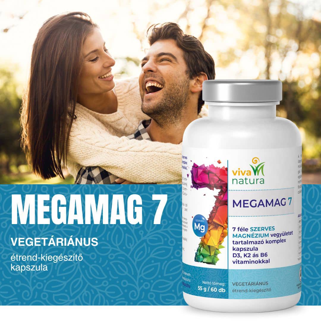 MEGAMAG 7, 7 féle szerves magnézium vegyületet tartalmazó komplex kapszula, D3, K2 és B6 vitaminokkal, VEGETÁRIÁNUS étrend-kiegészítő