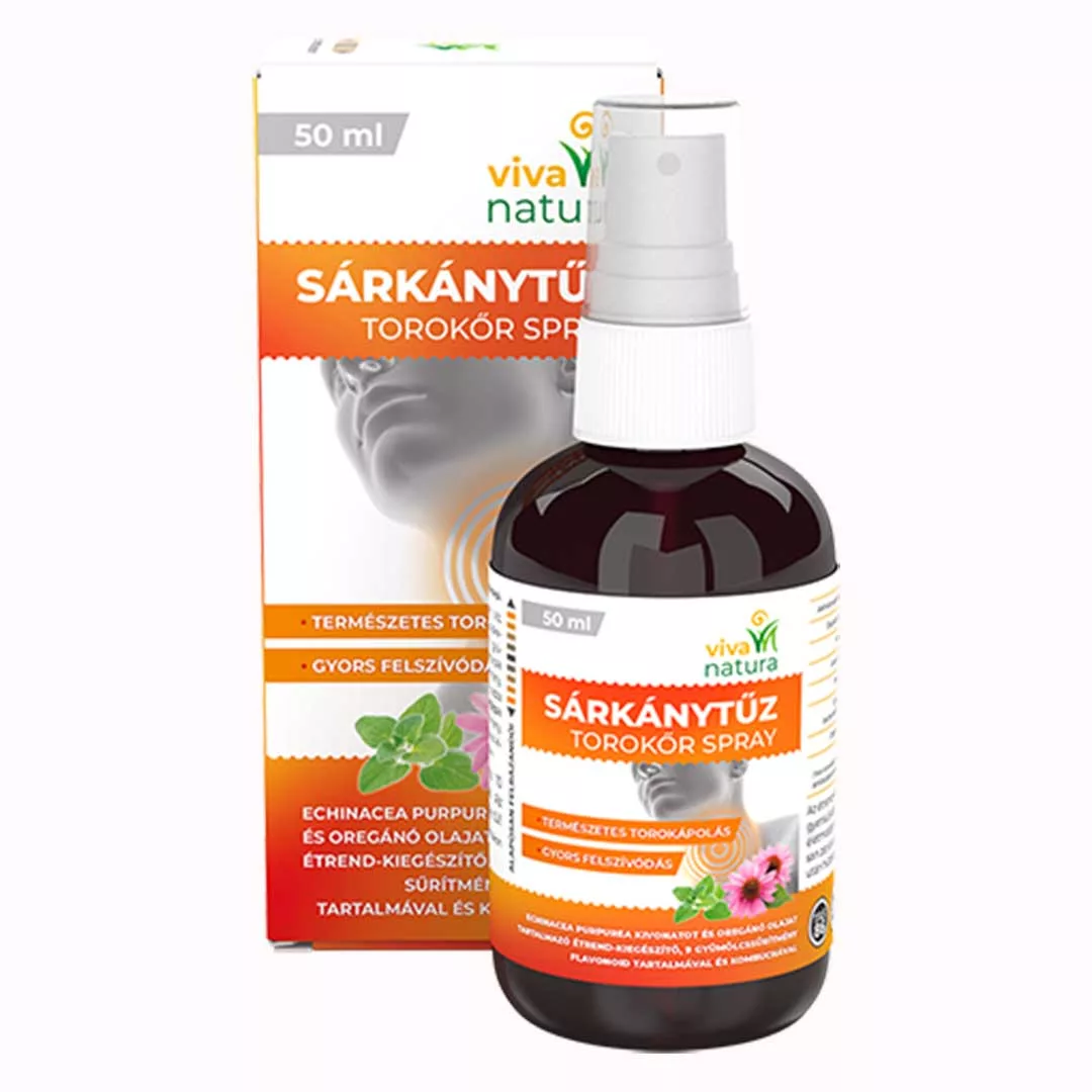 Sárkánytűz Torokőr Spray – Echinacea Purpurea kivonatot és oregánó olajat tartalmazó étrend-kiegészítő, 9 gyümölcssűrítmény flavonoid tartalmával és kombuchával